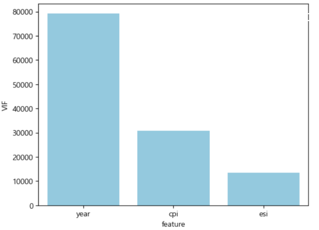 추후 모델링 시 다중공선성이 우려돼 vif 점수를 확인해보았습니다.
